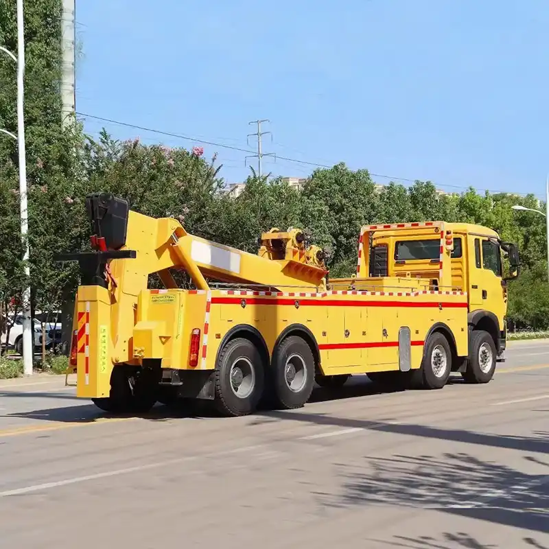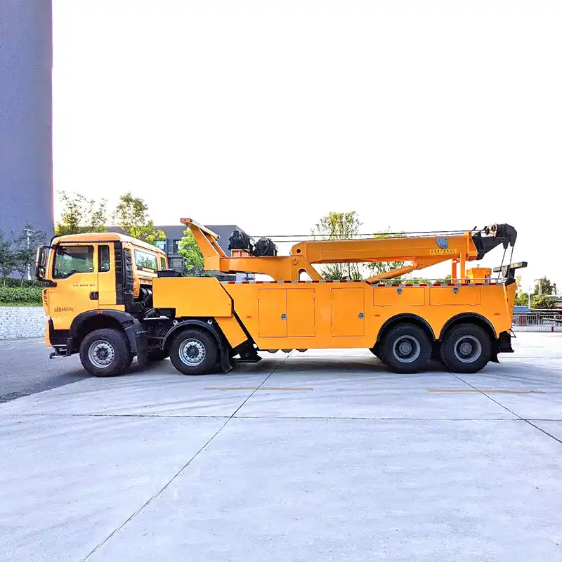 3. Large – tonnage hydraulic winch: High -strength wear -resistant steel -core ropes are selected. lt comes with a brake self – locking and slow – low-ering function. it does not slip or roll backward during heavy- load towing,and is suitable for extreme working conditions ofemergency towing ofheavy – duty vehicles.