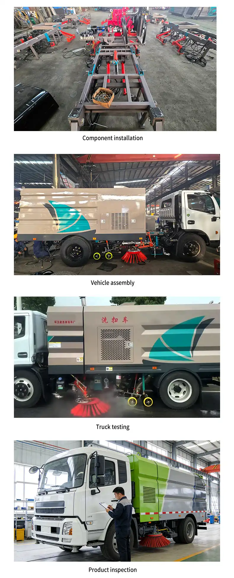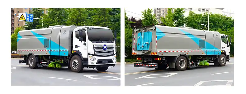 The operation structure is arranged with “two centrally- positionedsweeping discs + a centrally-positioned wide suction nozzle + an internal-ly-installed high -pressure main spray bar + left and right high – pressureside spray bars”