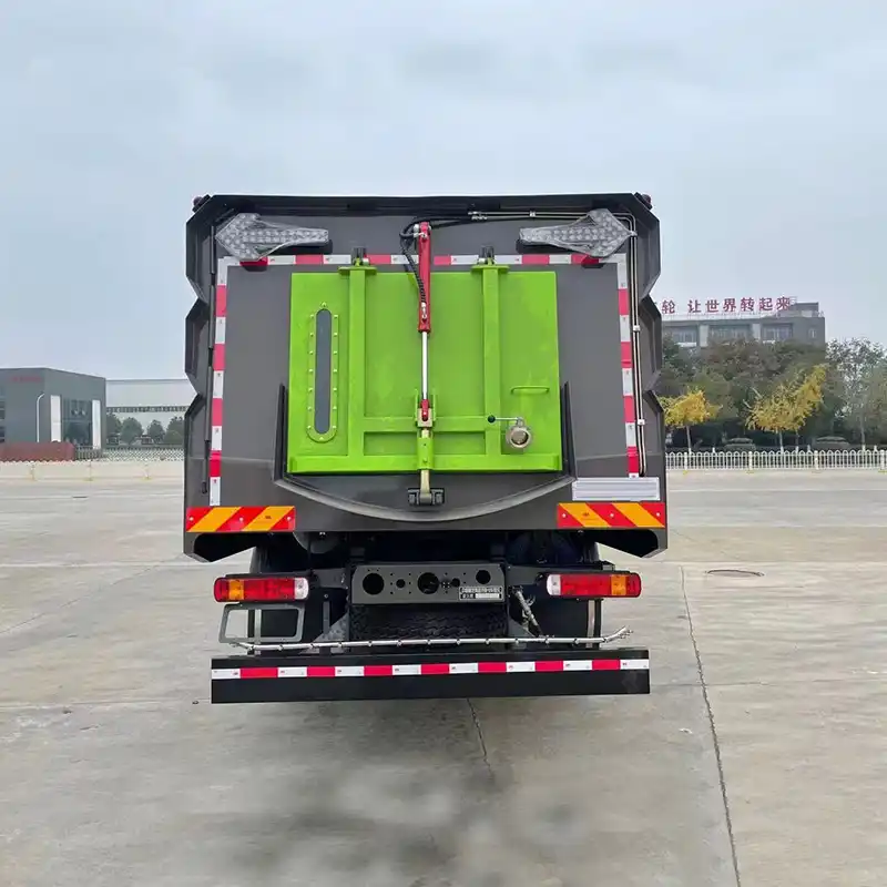 4. Dispositif de pulvérisation d'eau à haute pression : Par ailleurs, un système de pulvérisation d'eau à haut débit et à haute pression est installé dans la benne, ce qui permet d'éliminer rapidement les déchets.