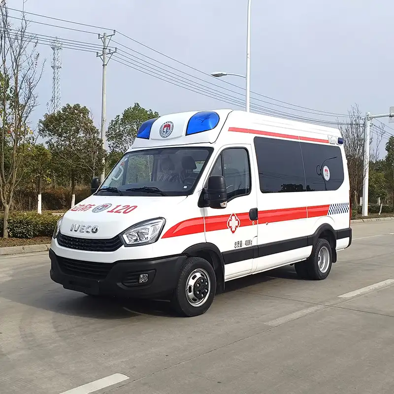 1. Camion-ambulance de transfert : Doté d'un équipement médical de base et d'un grand espace, il est utilisé pour le transfert des patients ordinaires et la prise en charge et la dépose des patients sortis de l'hôpital.