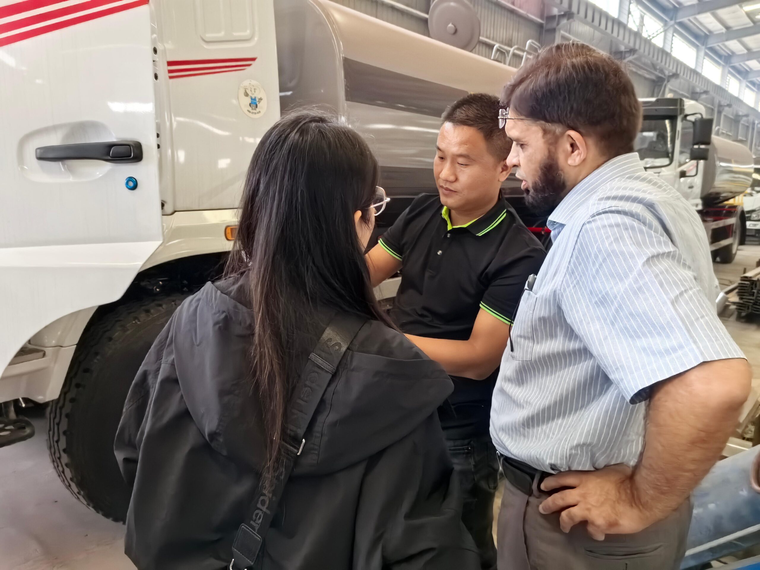 The delegation paid particular attention to the localized design of the vehicles. To meet Pakistan’s right-hand drive requirements, the Kaili Group vehicles on display all utilize a standardized right-hand drive chassis. The cab has been upgraded to a double-cab structure, accommodating four operators and equipped with safety features. The body is constructed of 16-gauge steel and coated with an anti-corrosion coating, making it suitable for the hot and humid climate of South Asia. Non-slip roof running boards and a sliding storage area that can accommodate a 30-foot ladder further enhance operational convenience.