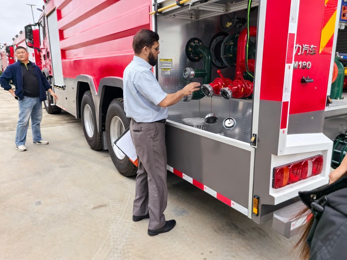 Technicians demonstrated two key vehicles: a Sinotruk water tank fire truck and an intelligent robotic firefighting rapid rescue truck. The former features a modular design, a PTO system, and a water tank capacity of up to 18,000 liters, making it suitable for extinguishing fires in large industrial areas. The latter is lightweight and maneuverable, capable of extinguishing fires while moving or reversing, overcoming the efficiency bottleneck of traditional fire trucks in confined fire scenes. “This vehicle is particularly well-suited for the narrow streets of cities like Karachi, significantly reducing rescue response times,” Karim commented after a test drive.