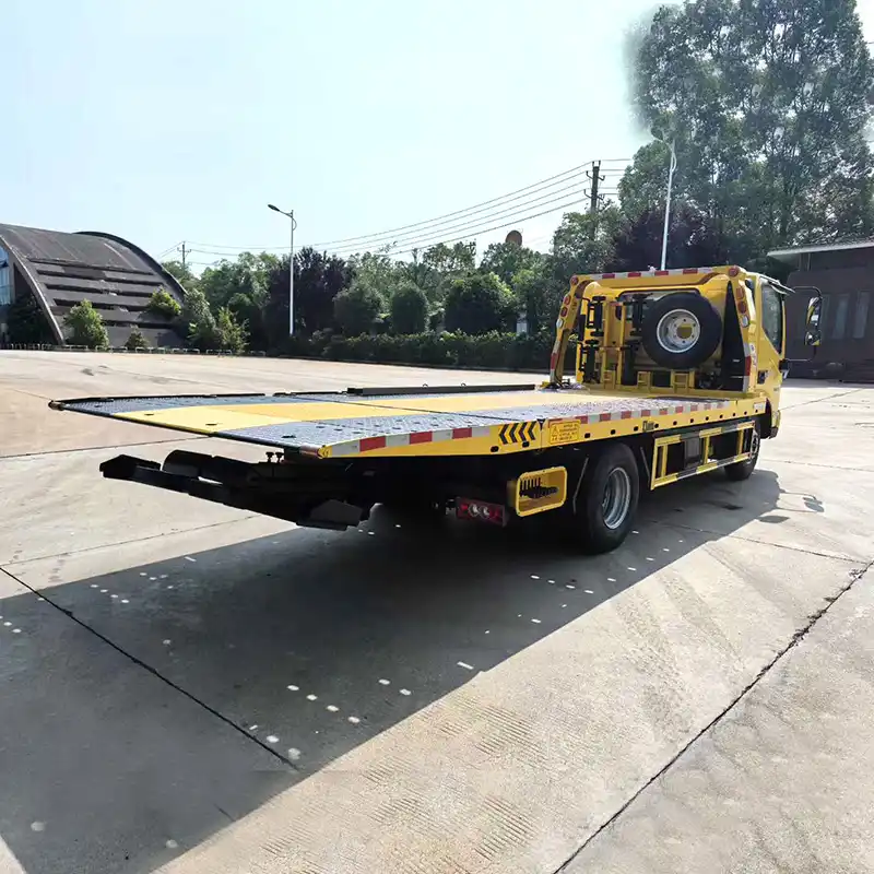 1. Эвакуатор с полностью опускающейся платформой: Платформа позволяет полностью опустить автомобиль на землю. При эвакуации автомобилей с низким шасси это облегчает погрузку автомобиля на платформу и минимизирует повреждения неисправного транспортного средства.